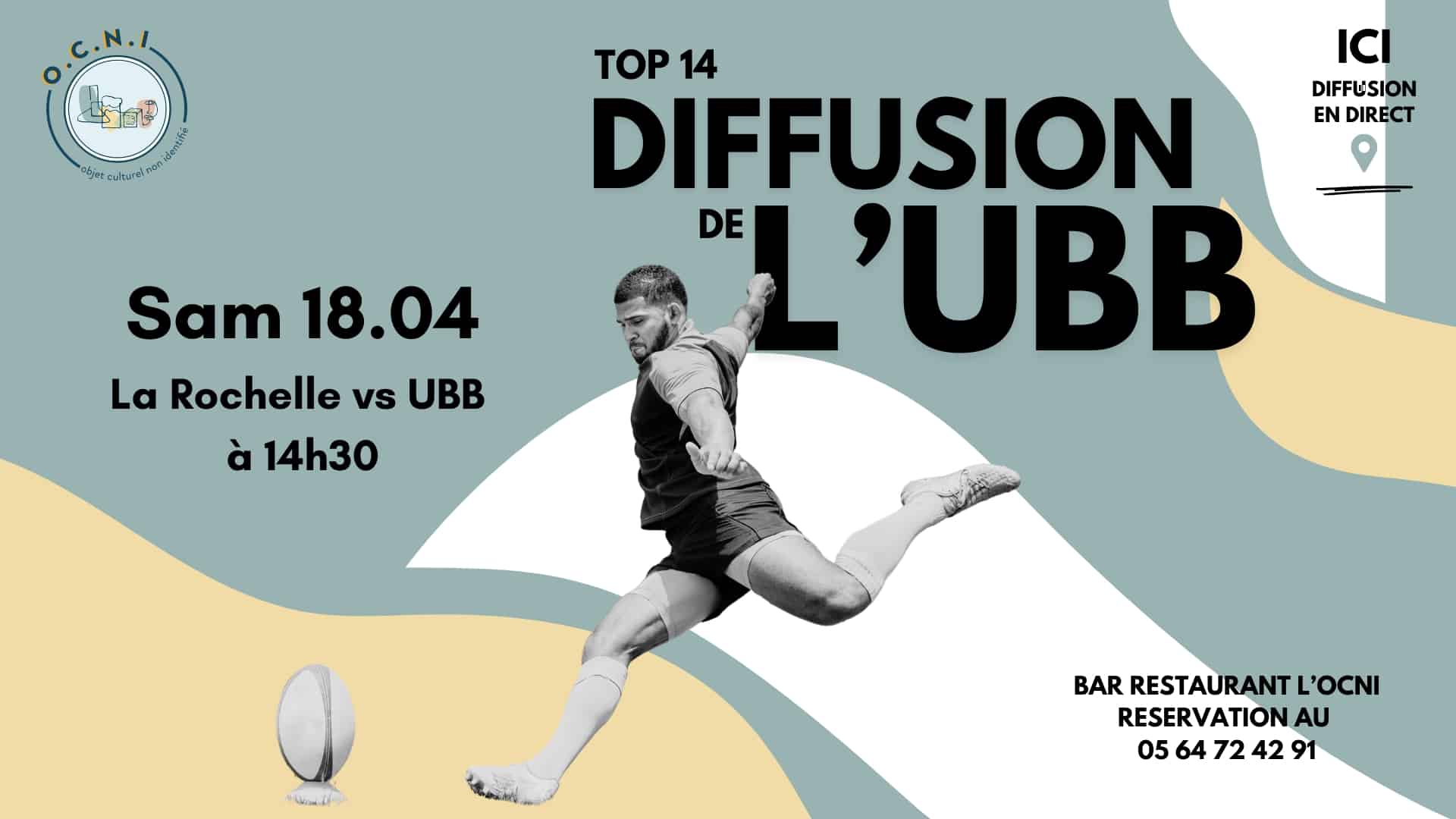 Le Samedi 18 avril à 14h30, le bar restaurant L’OCNI à Bordeaux diffuse en direct le match La Rochelle contre l’UBB , comptant pour le Top 14. Venez soutenir l’Union Bordeaux-Bègles dans une ambiance chaleureuse et passionnée.